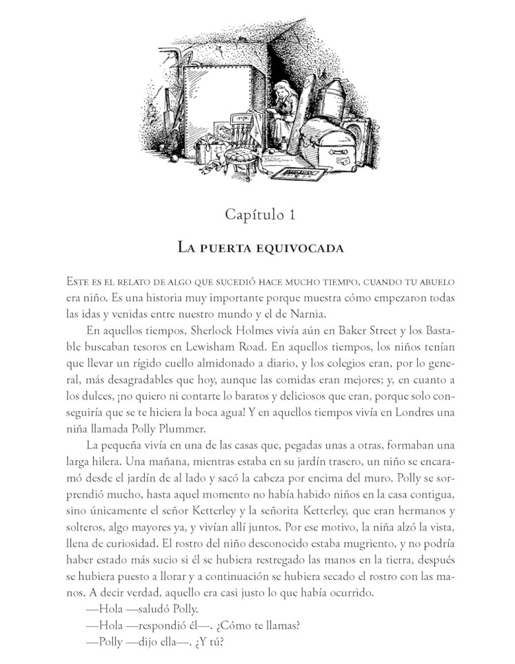 Un detalle especialmente interesante es cómo cada capítulo va encabezado por ilustraciones de Pauline Baynes. Esto no es un simple acompañamiento visual: es una forma de estructurar la lectura. Las imágenes no decoran, enmarcan. Funcionan como pequeñas pausas que recuerdan constantemente que este universo tiene una identidad estética muy definida desde sus orígenes. Baynes consigue algo curioso: sus ilustraciones no envejecen ni modernizan la obra, sino que la fijan en una especie de limbo. No intentan reinterpretar Narnia, sino consolidarla como ya era en su imaginario clásico. Y eso, en una edición integral como esta, refuerza la sensación de continuidad entre los siete libros.